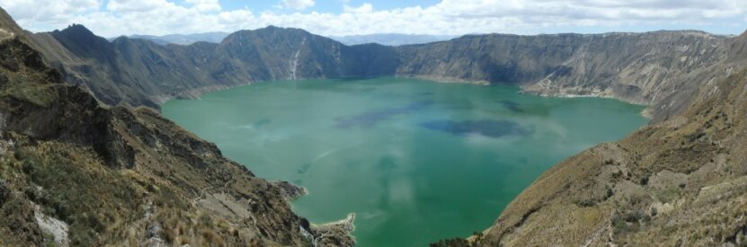 Le Quilotoa est une « caldeira » remplie d'eau et mesurant 3 kilomètres de large qui a été formée par l'effondrement de ce volcan de dacite suivi d'une éruption extrêmement violente il y a environ 820 ans, entraînant un écoulement pyroclastique (minute culture : c’est un mélange à haute température de gaz volcaniques, de vapeur d'eau et de particules solides), des coulées de boue atteignant l'océan Pacifique et le dépôt de cendres volcaniques dans l'air le long du nord des Andes. Le Quilotoa culmine aujourd’hui à 3 914 mètres d’altitude.