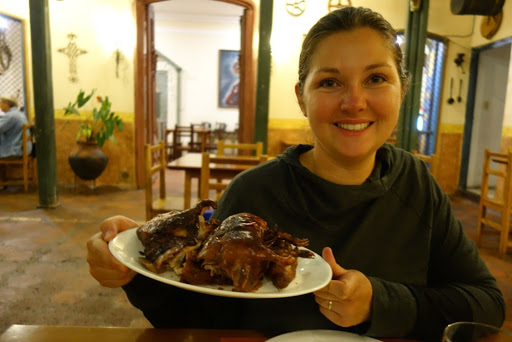- Les secos. Allez, je vous explique un plat commun équatorien, ça sera toujours utile. Il y a plusieurs options de viandes pour les secos : poulet, bœuf et surtout chèvre (en fait, vous aurez sûrement du mouton dans votre assiette) et, comme son nom ne l’indique pas, c’est un plat en sauce. C’est généralement une option sûre dans un almuerzo pour ne pas manger un riz trop sec.