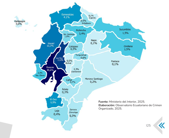 78,61% des homicides sont commis dans 3 provinces : Guayas (Guayaquil et Duran), Los Rios (Babahoyo, Quevedo, Puebloviejo, Buena Fe) et Manabi (Portoviejo et Manta). Je vous laisse imaginer le quotidien impossible des populations locales, notamment des femmes et enfants. Les villes de Esmeraldas et Machala comptent aussi parmi les plus impactées.